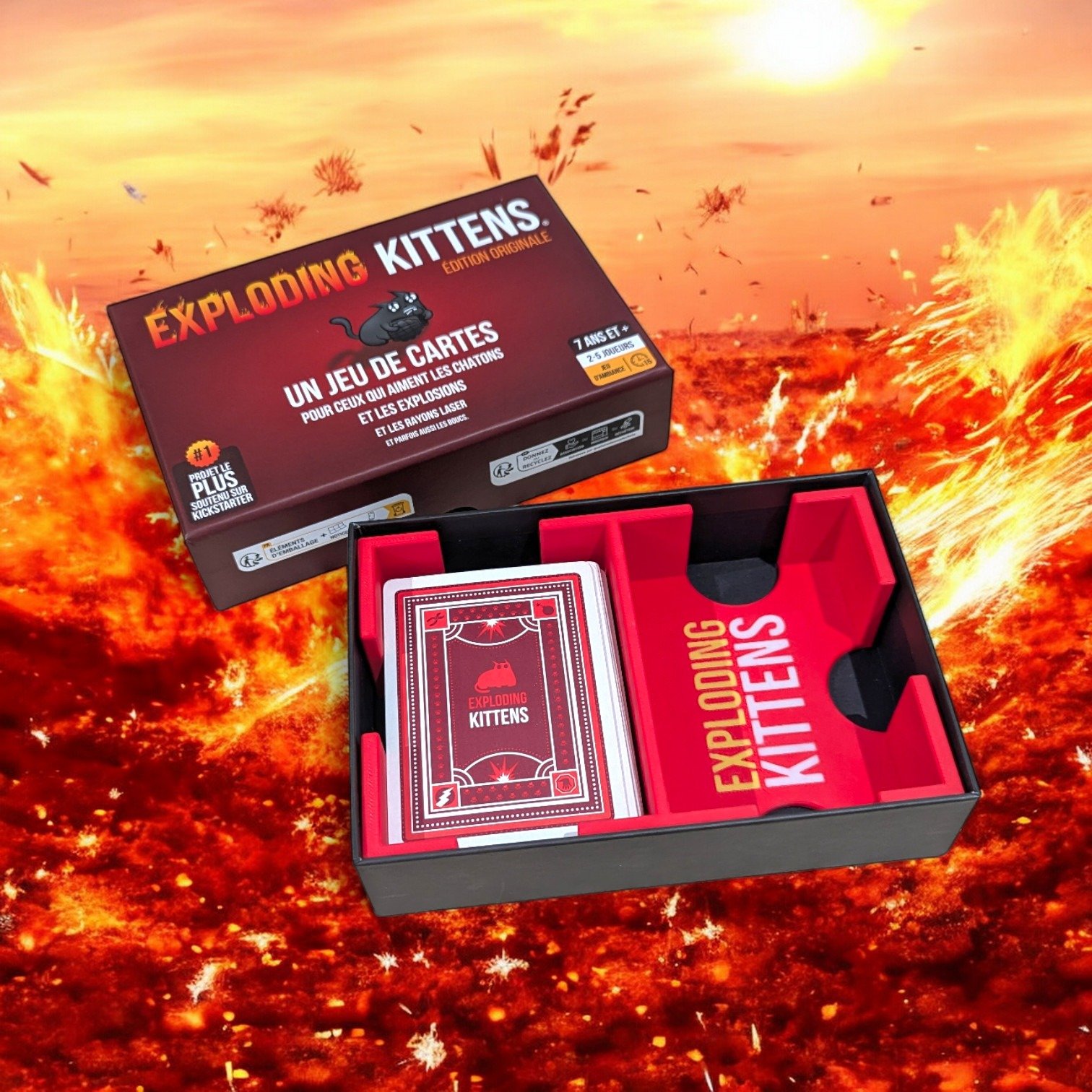 Ne contient pas le jeu Exploding Kittens.Exploding Kittens est un jeu édité par Exploding Kittens . Ce dernier n’assume aucune responsabilité quant aux accessoires et rangements compatibles proposés par FigAmat.