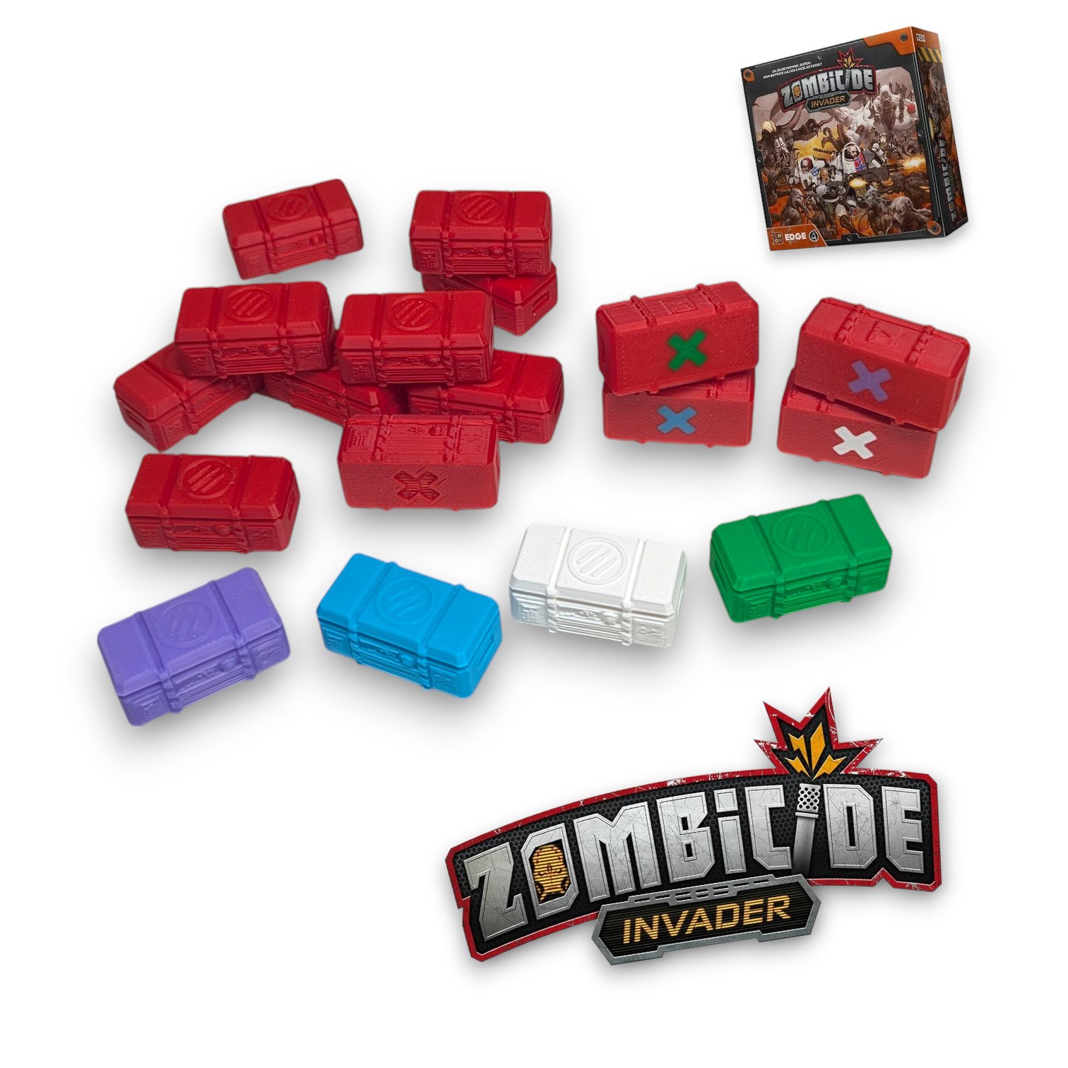 Lot 18 caisses objectifs 3D compatible Zombicide - InvaderLot 18 caisses objectifs 3D compatible Zombicide – Invader