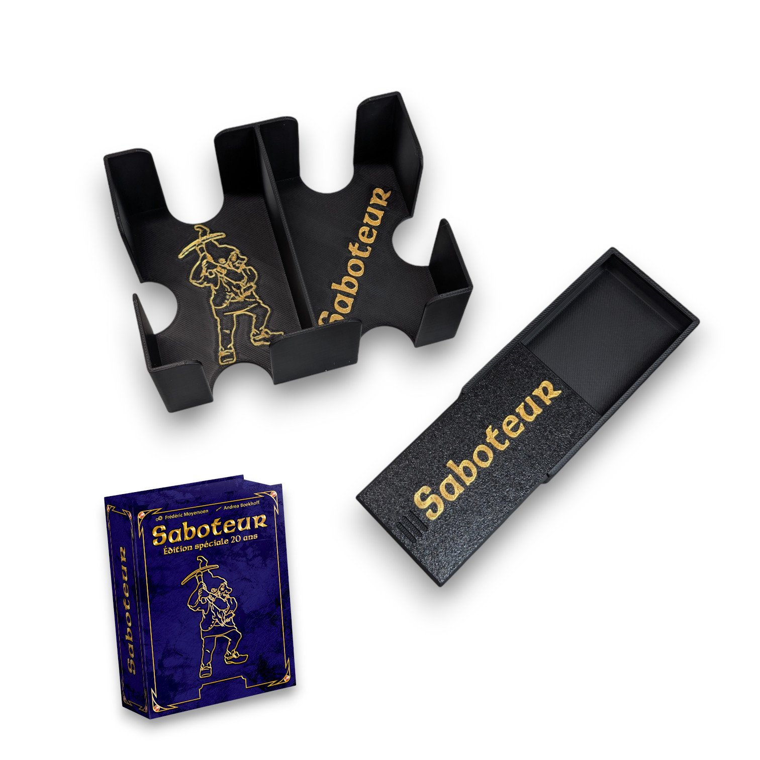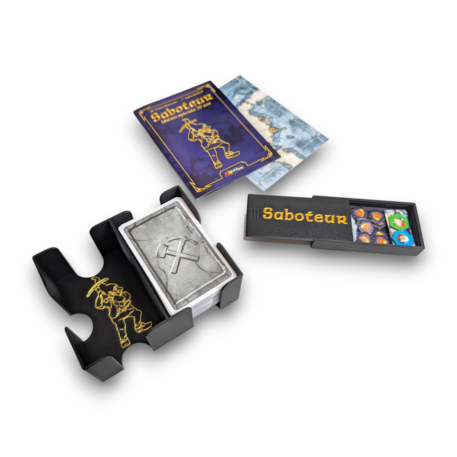 Organisez votre boite de jeu Saboteur – Édition 20 ans et profitez d’un sabot rangement et d’une boîte à pépites.